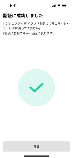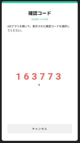 タップするとxIDアプリが起動し、3つの確認コードが表示されます