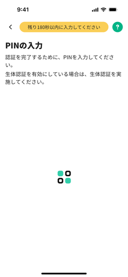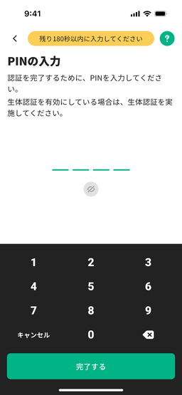 - アカウント作成時に設定した4~12桁のPINを入力(生体認証も利用可能)