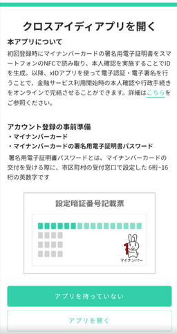 - 外部連携先のサービスでxID認証プロバイダ画面が開くため「アプリを開く」をタップ