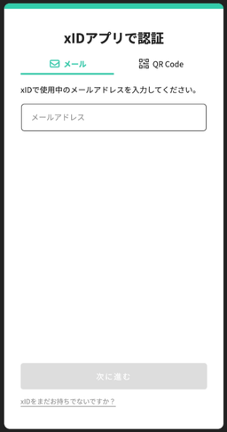 - 連携サービスのログイン画面で、QRコードをxIDアプリで読み込むか、メールアドレスを入力します