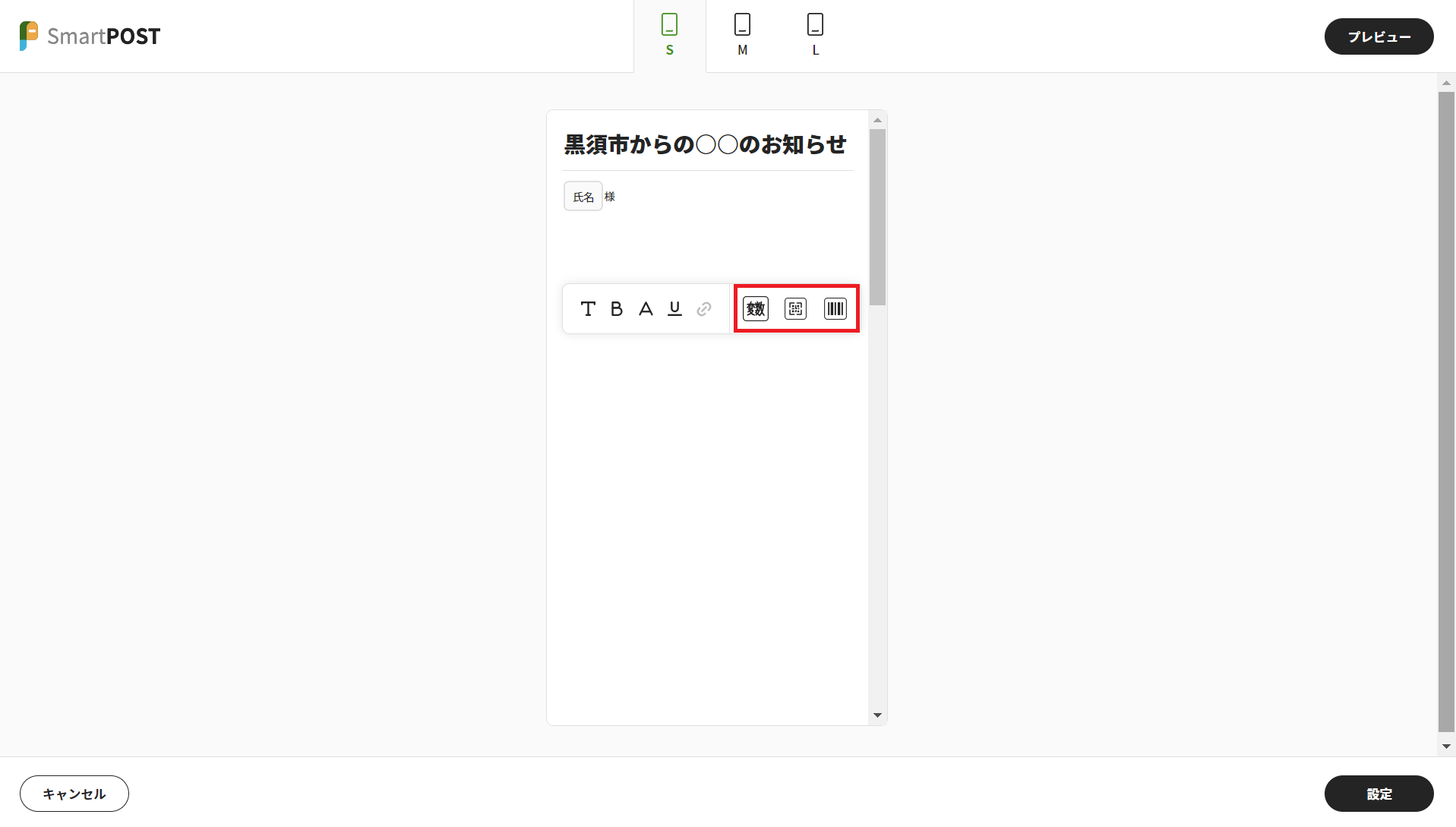 ※QRコード変数:300文字以内でQRコード変数を設定できます。